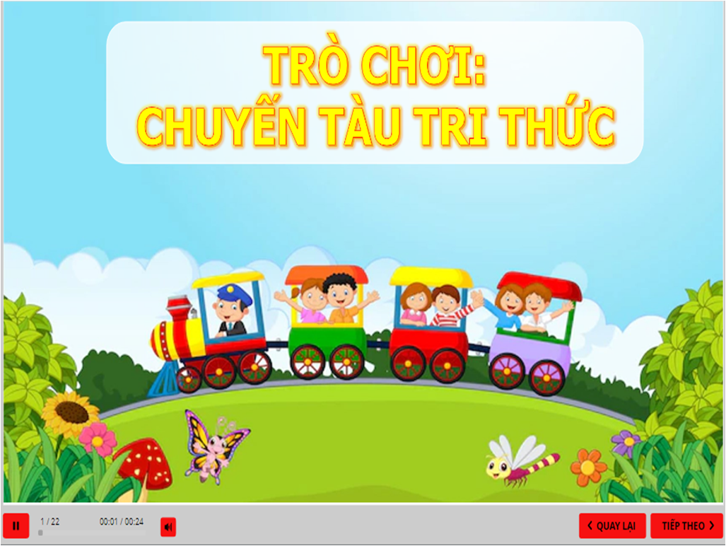 - Nếu xuất hiện mặt cười, bé làmđúng rồi. Bé kích chuột vào ô chữ “Tiếp tục” màu đỏ bên phải phía dưới màn hình để tiếp tục chuyến tàu.