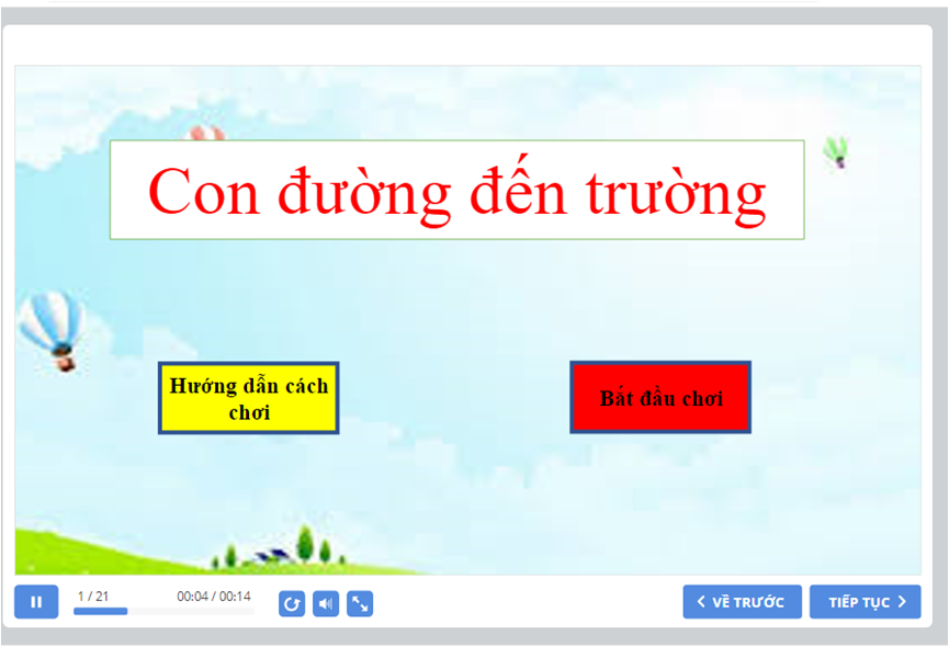 Bước 1: Kích chuột vào hình ảnh ô tô để bắt đầu hành trình đến trường và trả lời các câu hỏi.
