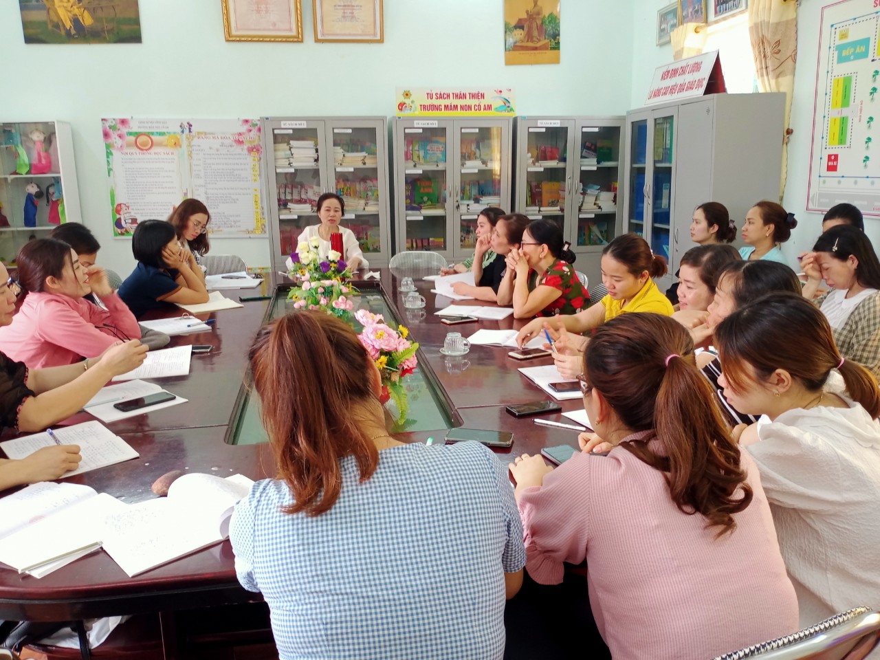Chuyên đề diễn ra rất thành công với sự góp mặt của các đồng chí trong Ban giám hiệu, TTCM 1, GV cốt cán, và giáo viên trong trường. Các cô dự giờ và trao đổi, chia sẻ kinh nghiệm góp phần nâng cao chất lượng giáo dục trong thực hiện Chương trình giáo dục mầm non.