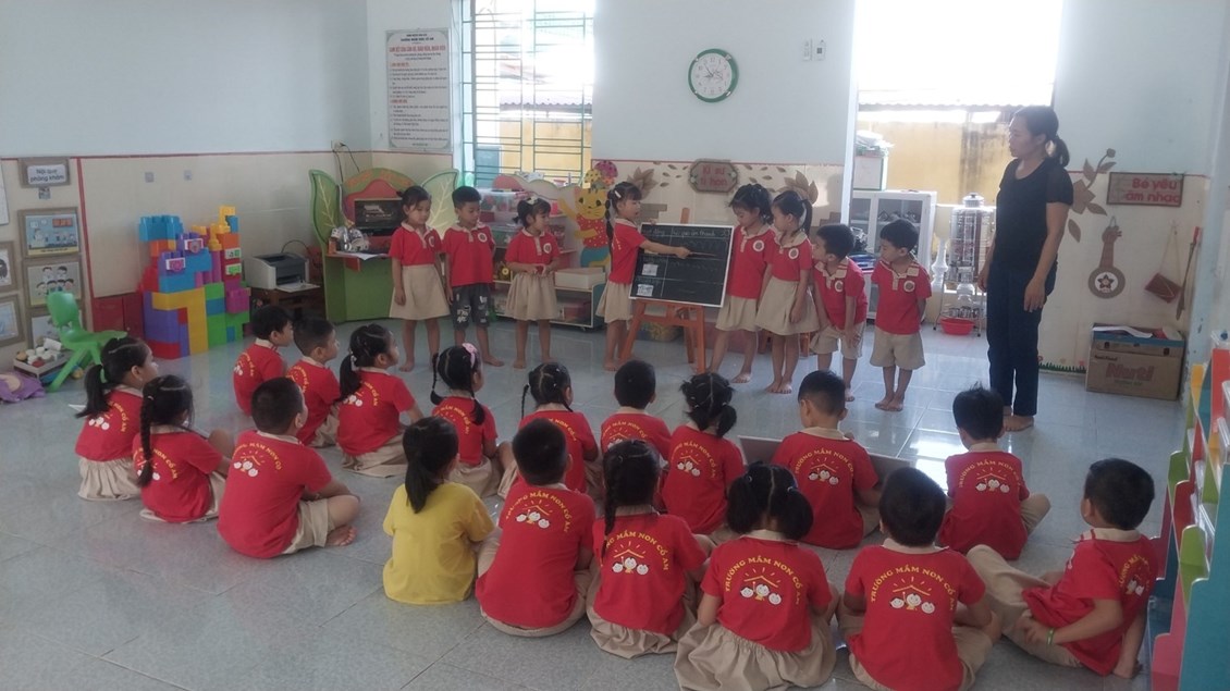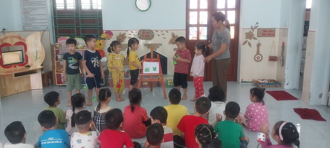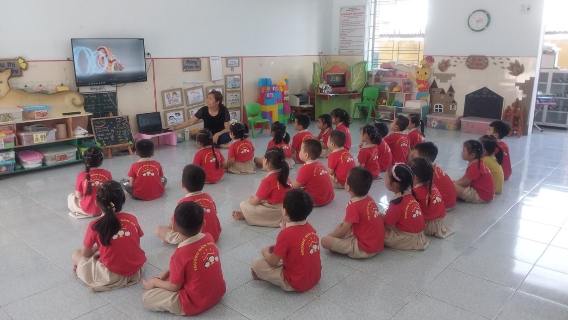 Cô mở dự án, cùng trẻ khám phá chức năng của đôi tai (Bước 1+ Bước 2):