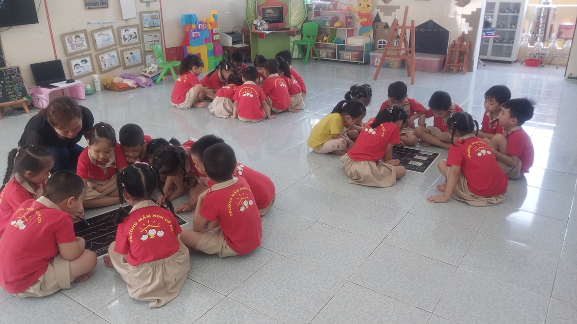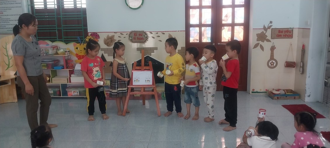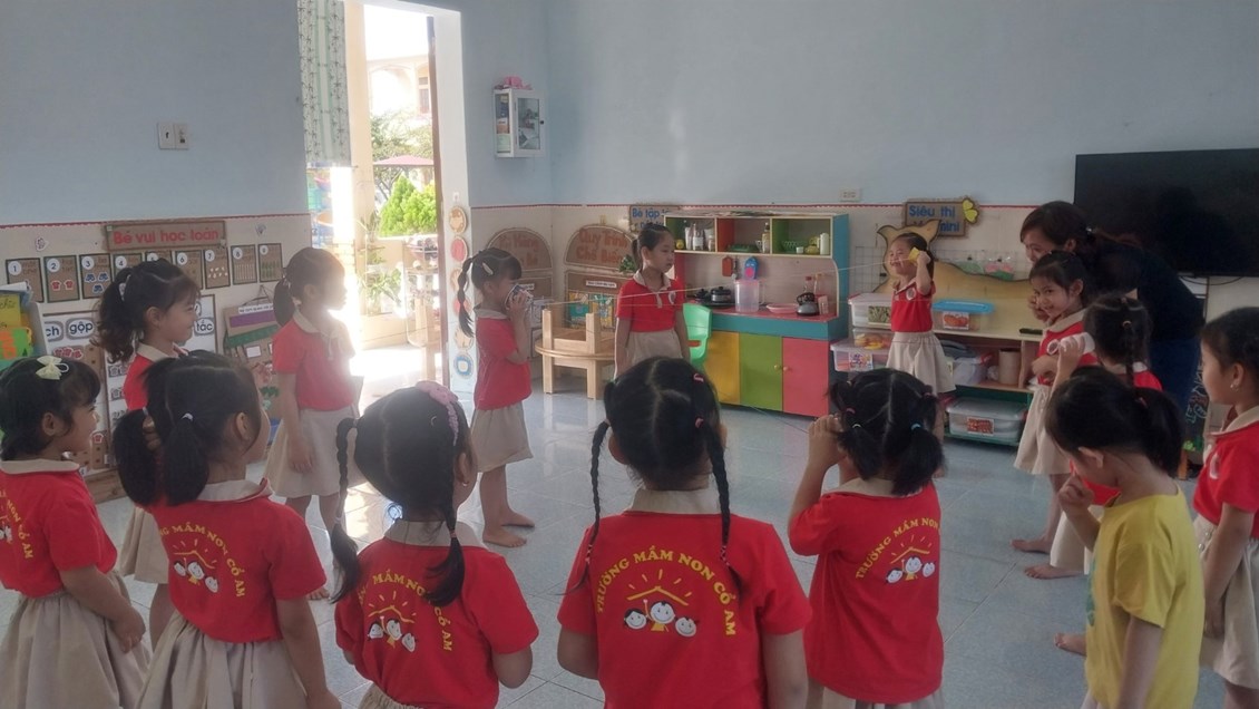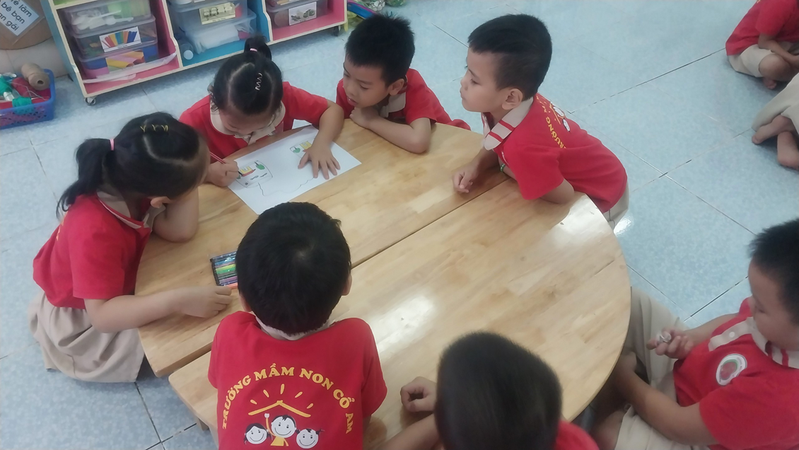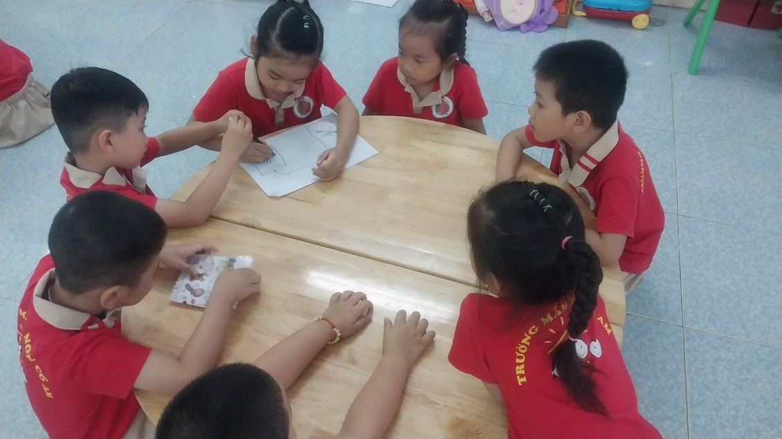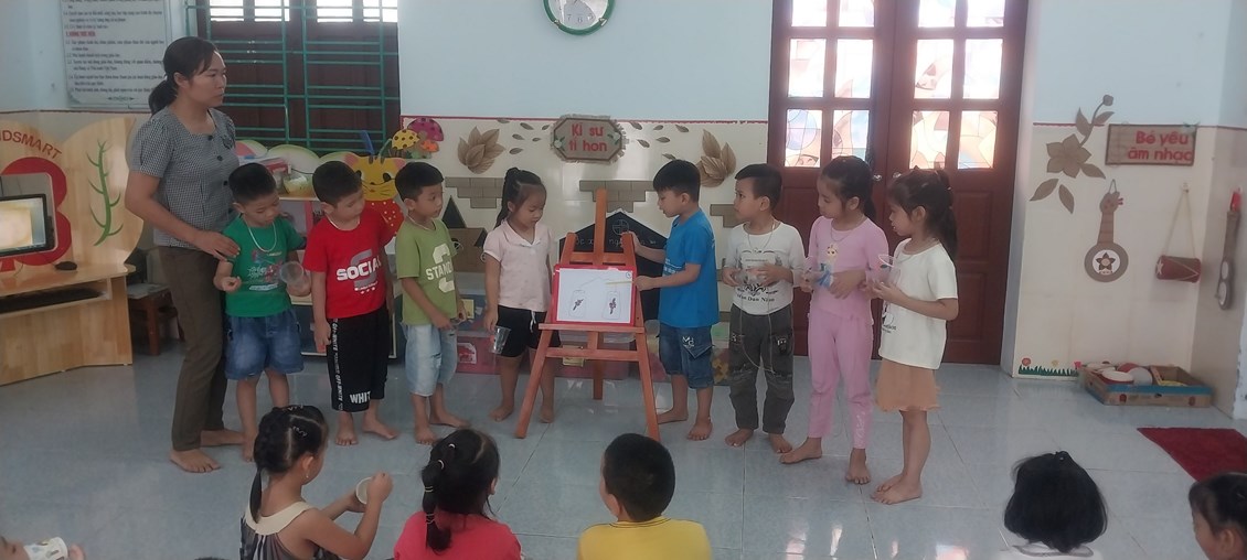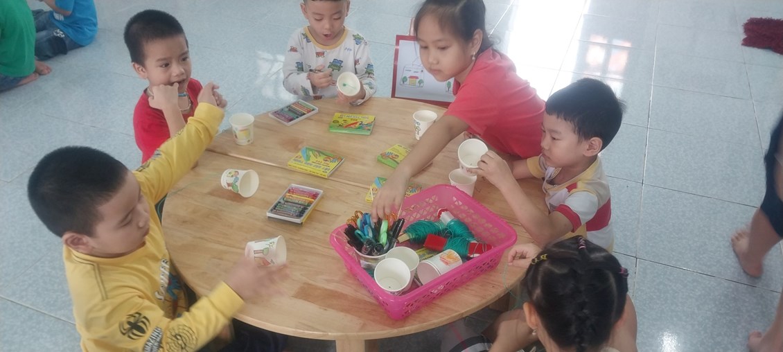 thanh khác nhau như thế nào. Kết thúc dự án, trẻ cảm thấy vui tươi phấn khởi vì đã biết phối hợp cùng các bạn chế tạo ra điện thoại có dây dẫn âm thanh, trân trọng giữ gìn sản phẩm mình tạo ra.