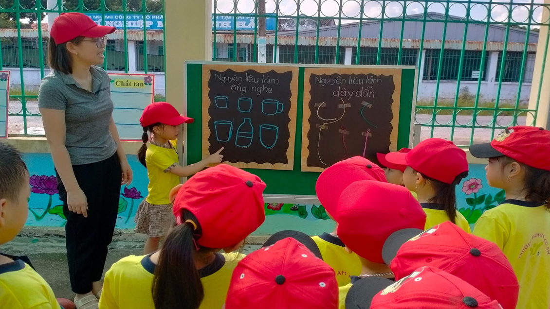 chiếc điện thoại dây dẫn mà trẻ đã tạo ra để biết được âm thanh của mỗi