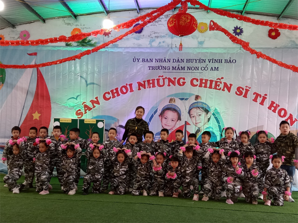 Hòa chung với không khí tưng bừng của cả nước chào mừng ngày thành lập Quân đội nhân dân Việt Nam (22/12/1944 - 22/12/2023) và ngày hội quốc phòng toàn dân (22/12/1989 - 22/12/2023) cô trò trường mầm non Cổ Am 1 đã tổ chức nhiều hoạt động diễn ra trong ngày 21 tháng 12.
