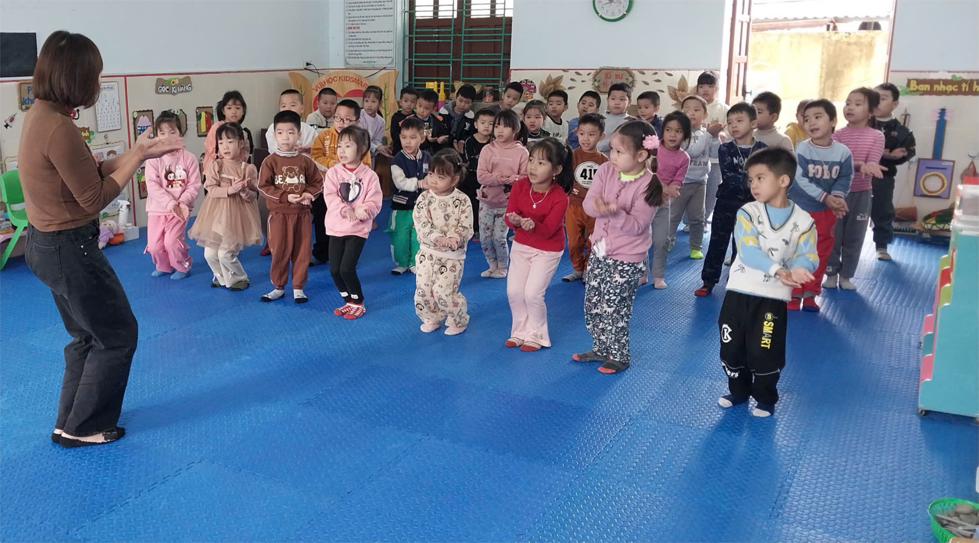 Dưới đây là một số hình ảnh hoạt động trong giờ học vận động múa của lớp 5T2 - Trường mầm non Cổ Am, các bậc cha mẹ học sinh và các bé cùng xem nhé: