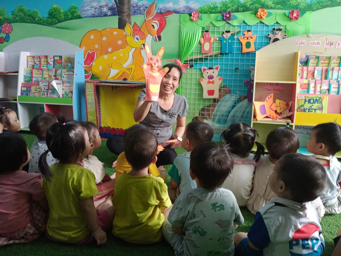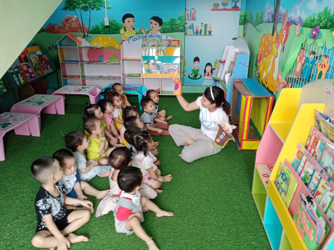 Với trẻ em ở độ tuổi mầm non, xem sách và thích nghe cô giáo đọc sách có vai trò vô cùng quan trọng đối với sự phát triển ngôn ngữ, cảm xúc, kỹ năng xã hội của trẻ. Xem sách giúp trẻ làm quen với nhiều hình ảnh khác nhau còn nghe đọc sách giúp trẻ nhận biết âm thanh khác nhau của ngôn ngữ, giúp ngôn ngữ của trẻ linh hoạt, vốn từ phong phú phát triển hơn. Từ đó giúp trẻ tự tin trong giao tiếp, ngôn ngữ của trẻ cũng dần phát triển. Với trẻ ngọng, hay chậm nói sẽ giúp trẻ phát triển và dần hoàn thiện ngôn ngữ hơn. Được nghe nhiều về các câu chuyện sẽ khiến trẻ học được các bài học kỹ năng giao tiếp và xử lý tình huống trong thực tế. Trẻ biết chào hỏi lễ phép, biết yêu thương và giúp đỡ mọi người xung quanh…Trẻ biết chủ động bộc lộ bản thân và nói lên những điều mình nghĩ. Nghe cô đọc sách, hay tự mình mở sách ra xem còn giúp bé thư giãn, giảm căng thẳng, mệt mỏi. Bé hào hứng đón nhận kiến thức mới, mong mỏi được khám phá điều hay, mới lạ với trẻ.