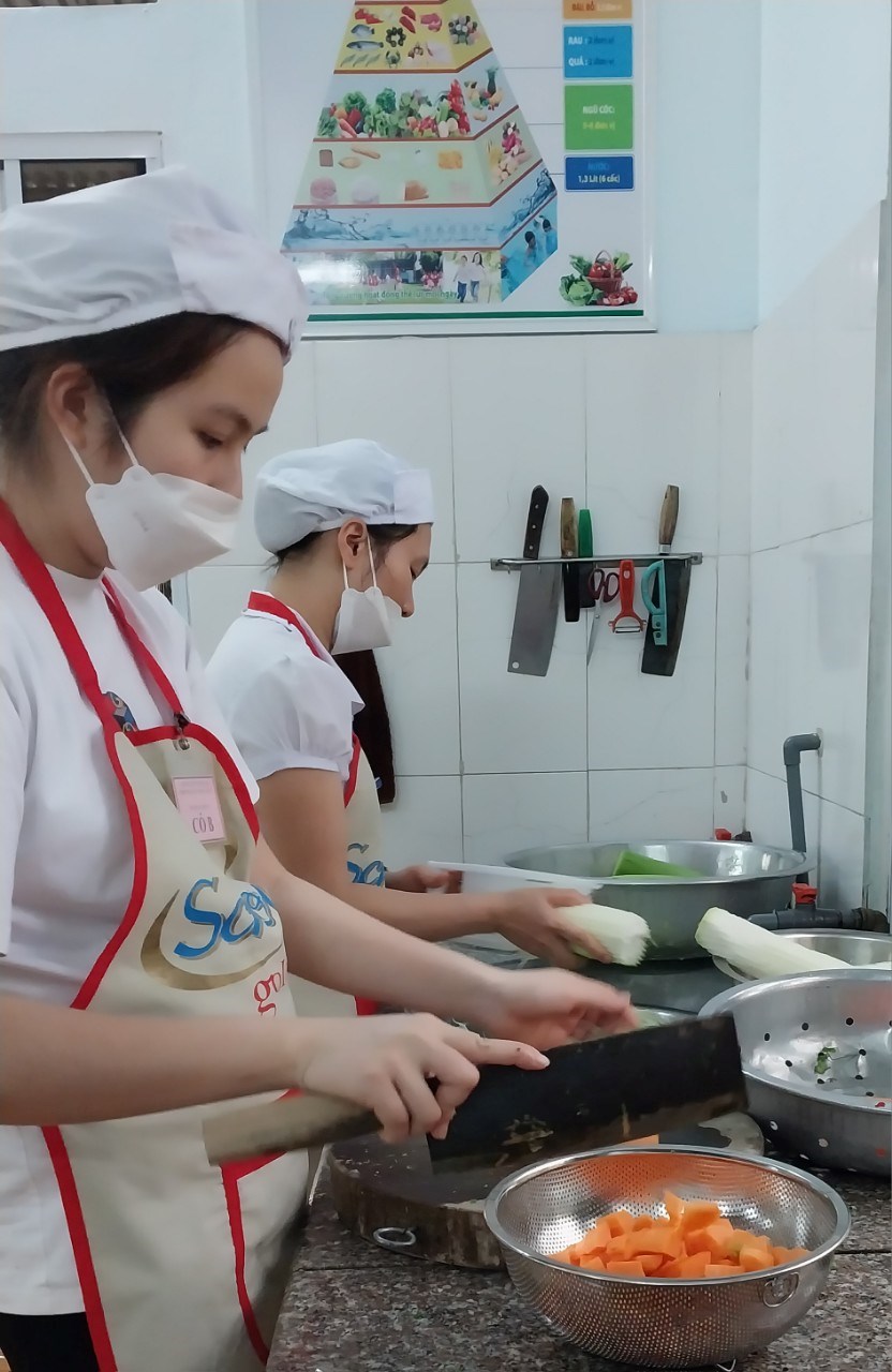 Chế biến có sự giám sát của Ban giám hiệu nhà trường.