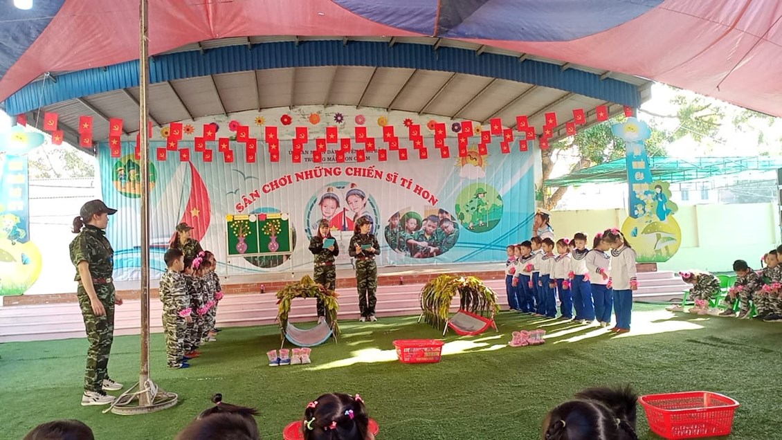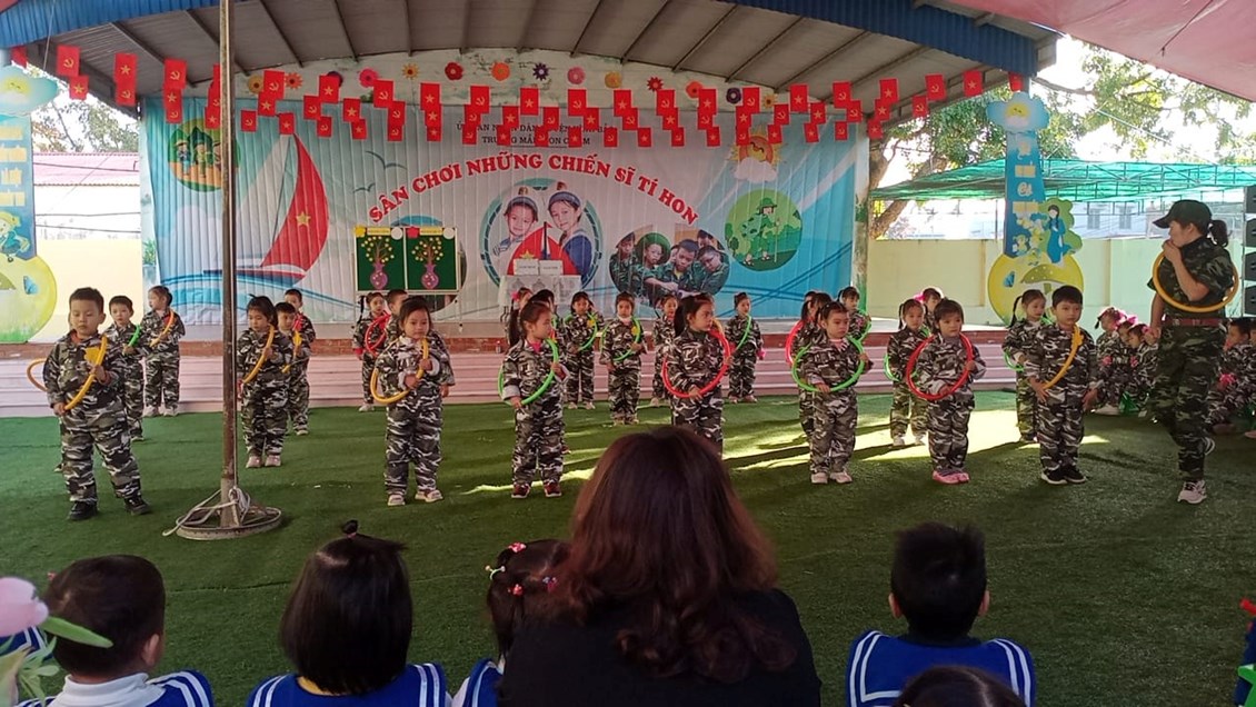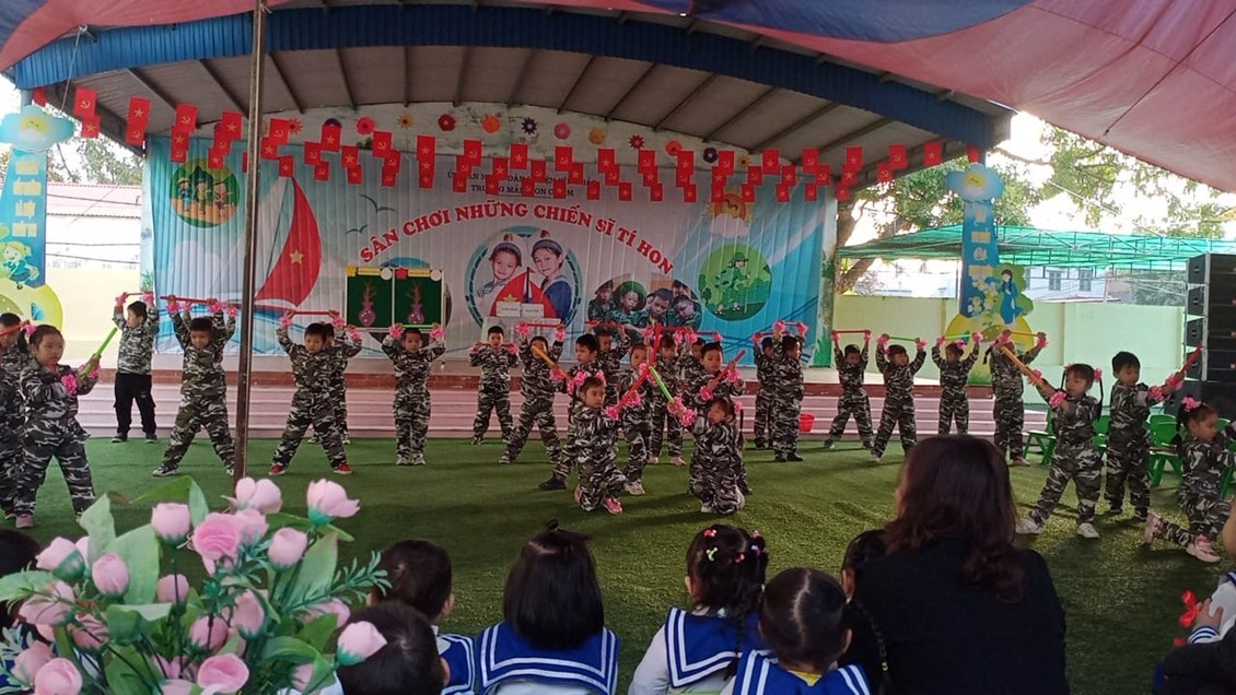Sáng ngày 21/12/2022 Trường mầm non Cổ Am tổ chức Sân chơi " Chiến sĩ tý hon" kỷ niệm 78 Ngày thành lập QĐND Việt nam (22/12/1944-22/12/2022) và 33 năm ngày hội Quốc phòng toàn dân (22/12/1989-22/12/2022)