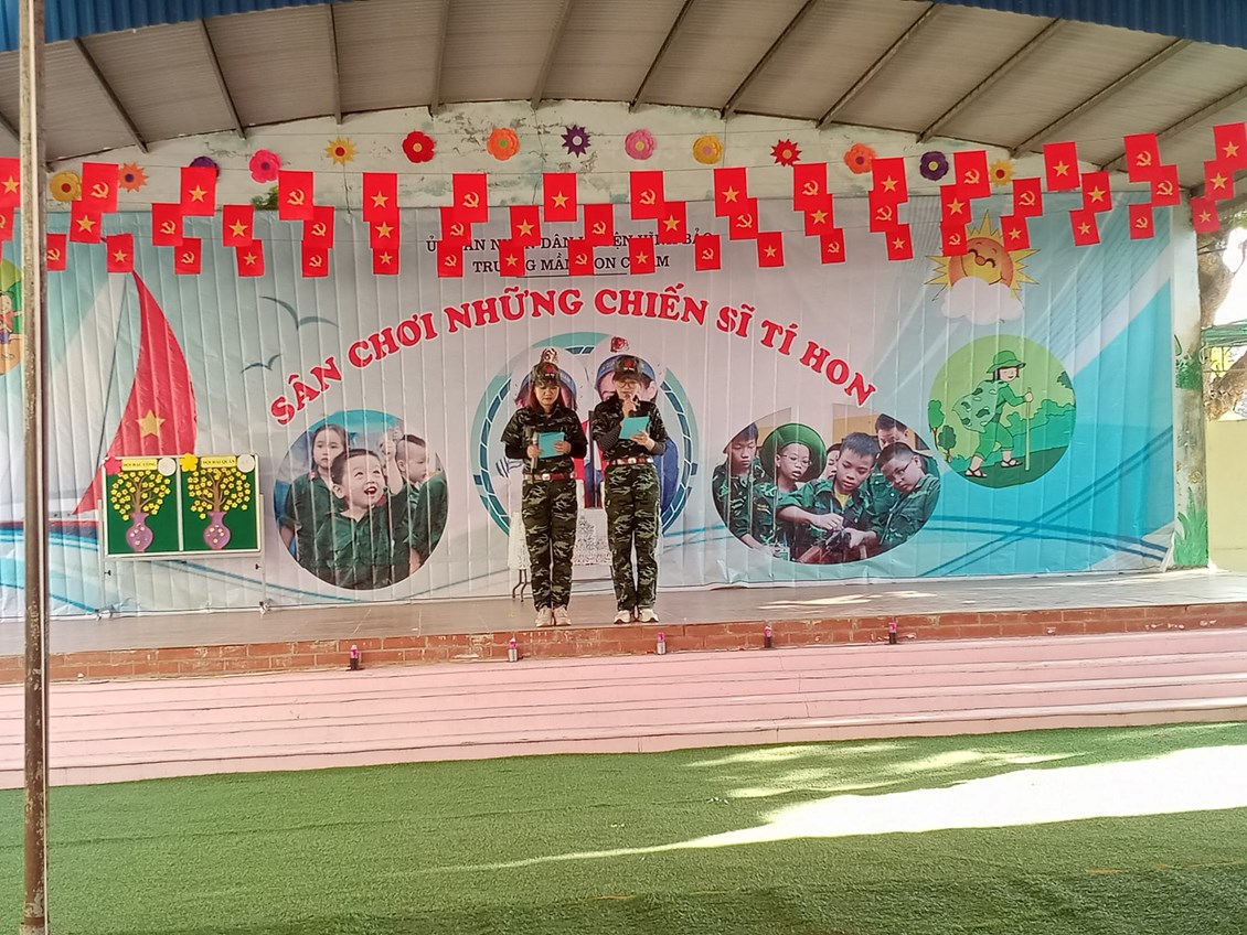 Thông qua sân chơi cô trò trường Mầm non Cổ Am xin kính chúc sức khỏe đến vị đại biểu, các bậc phụ huynh và xin gửi những lời chúc tốt đẹp nhất đến các chiến sĩ đã, đang và sẽ tiếp tục cống hiến cuộc đời mình cho sự nghiệp xây dựng, bảo vệ Tổ quốc.