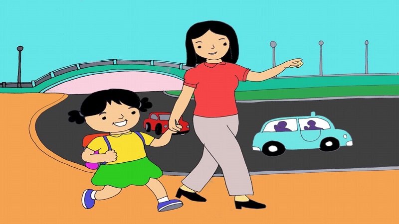 Cô dạy cho bé học bài học giao thông