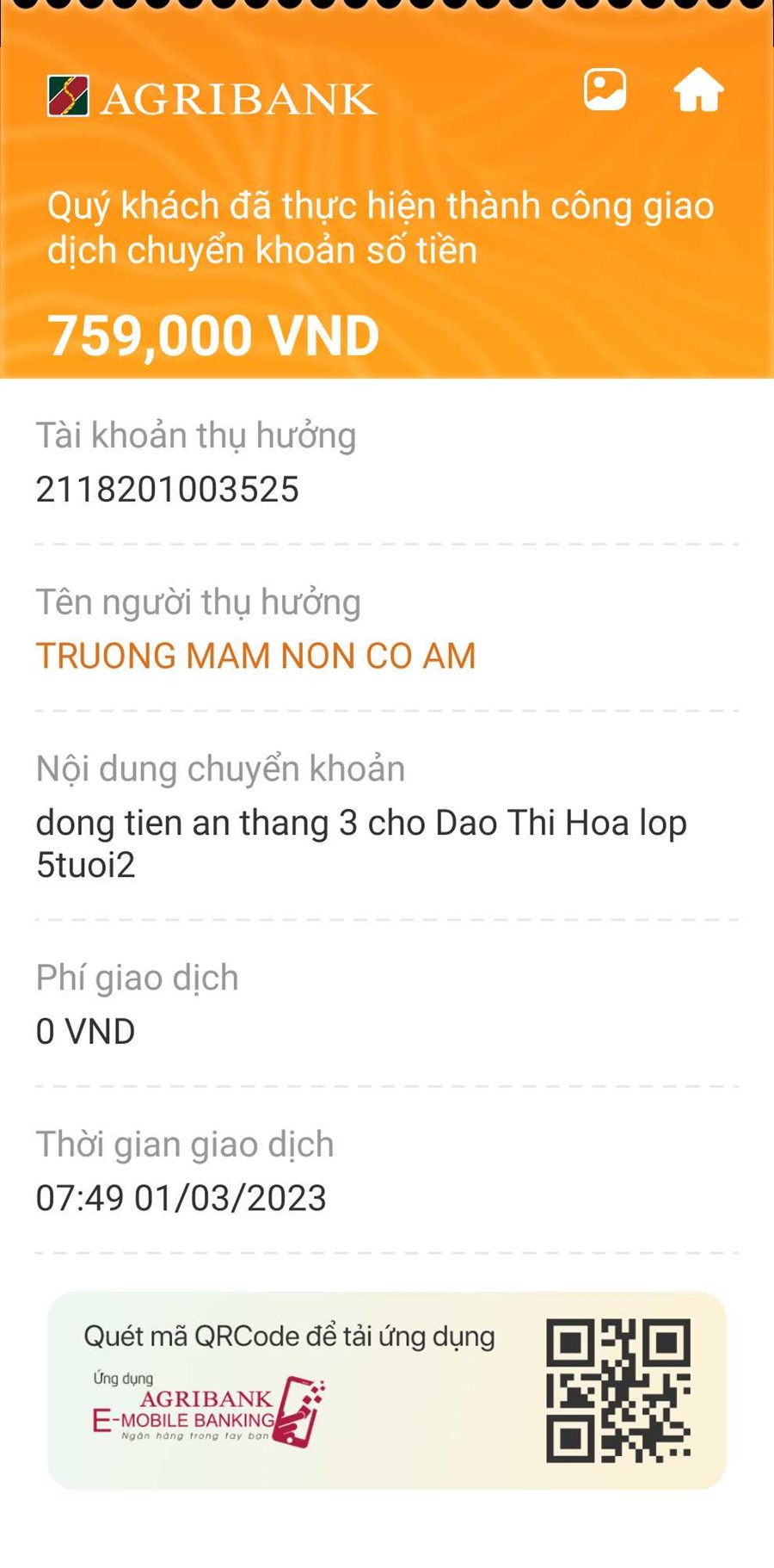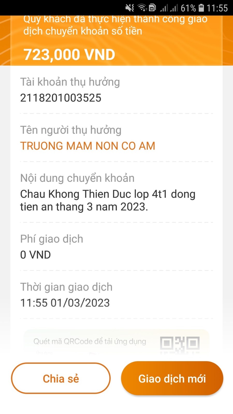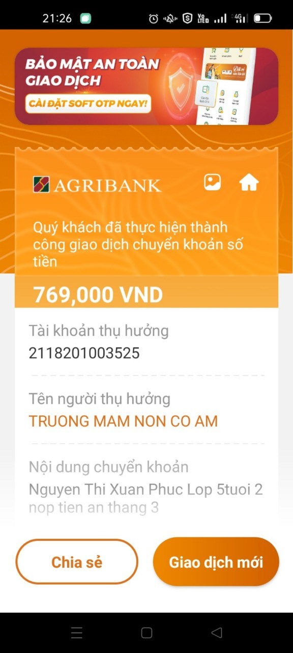 Phụ huynh thực hiện thánh công nhanh gọn thanh toán chuyển khoản