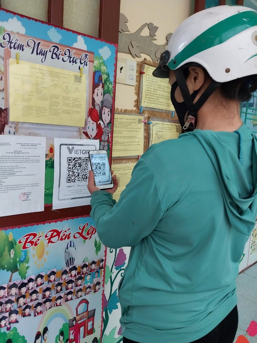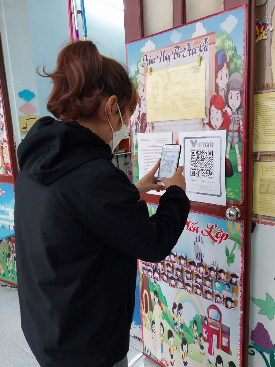 Phụ huynh thực hiện quét mã QR nộp tiền chuyển khoản