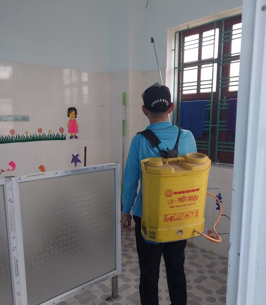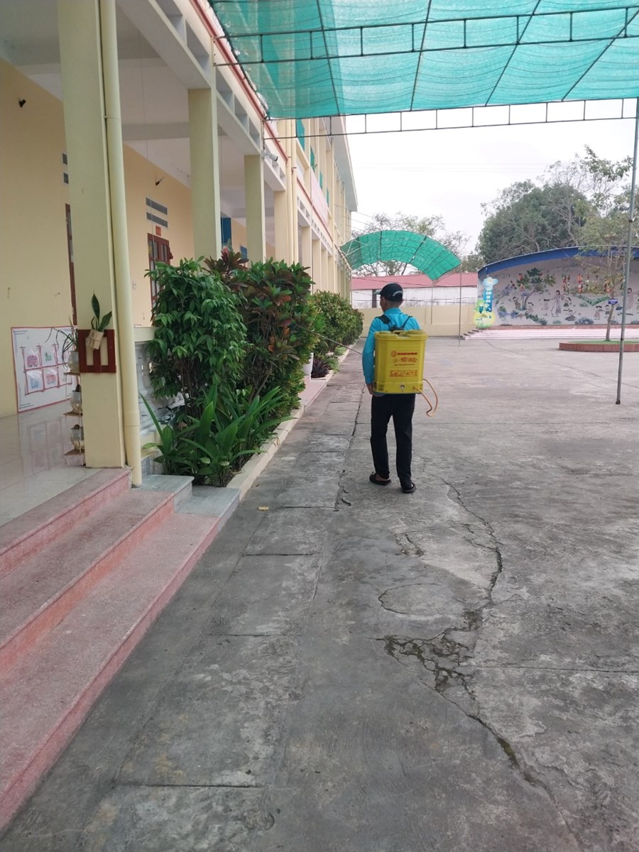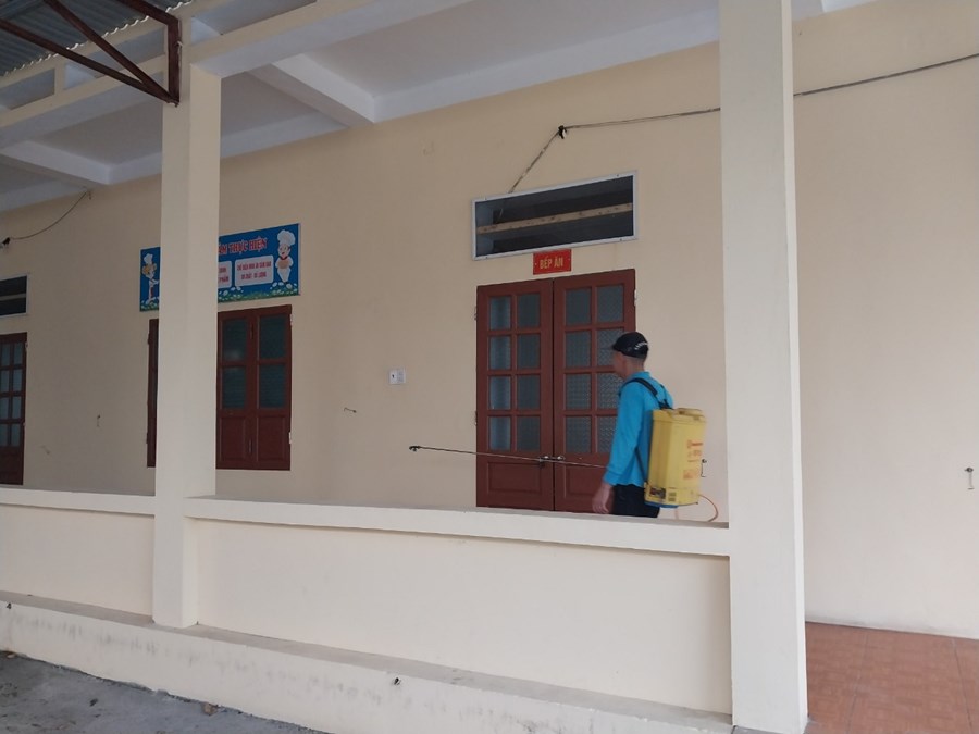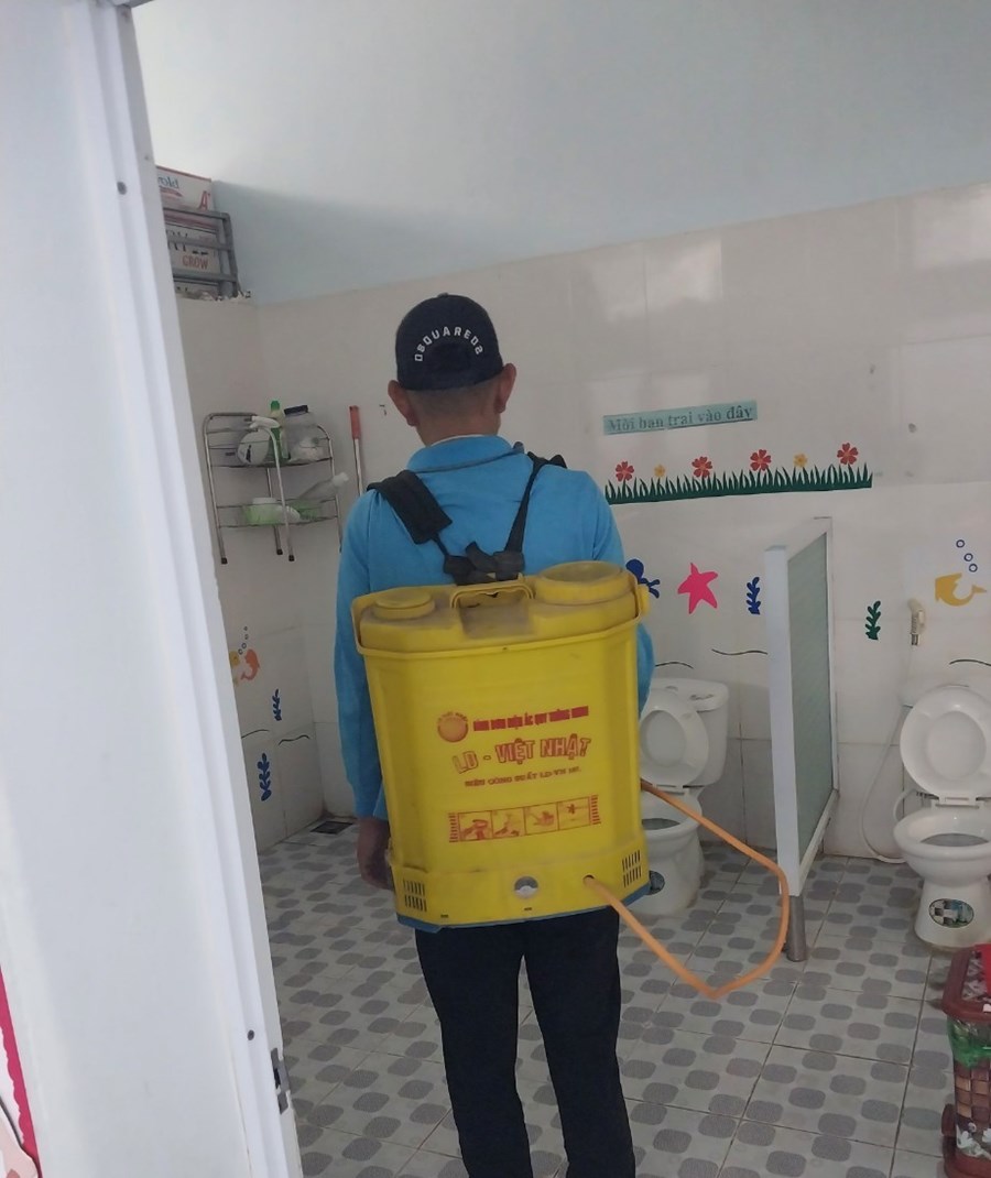 Phun thuốc muỗi khu vực ngoài lớp học và bếp ăn