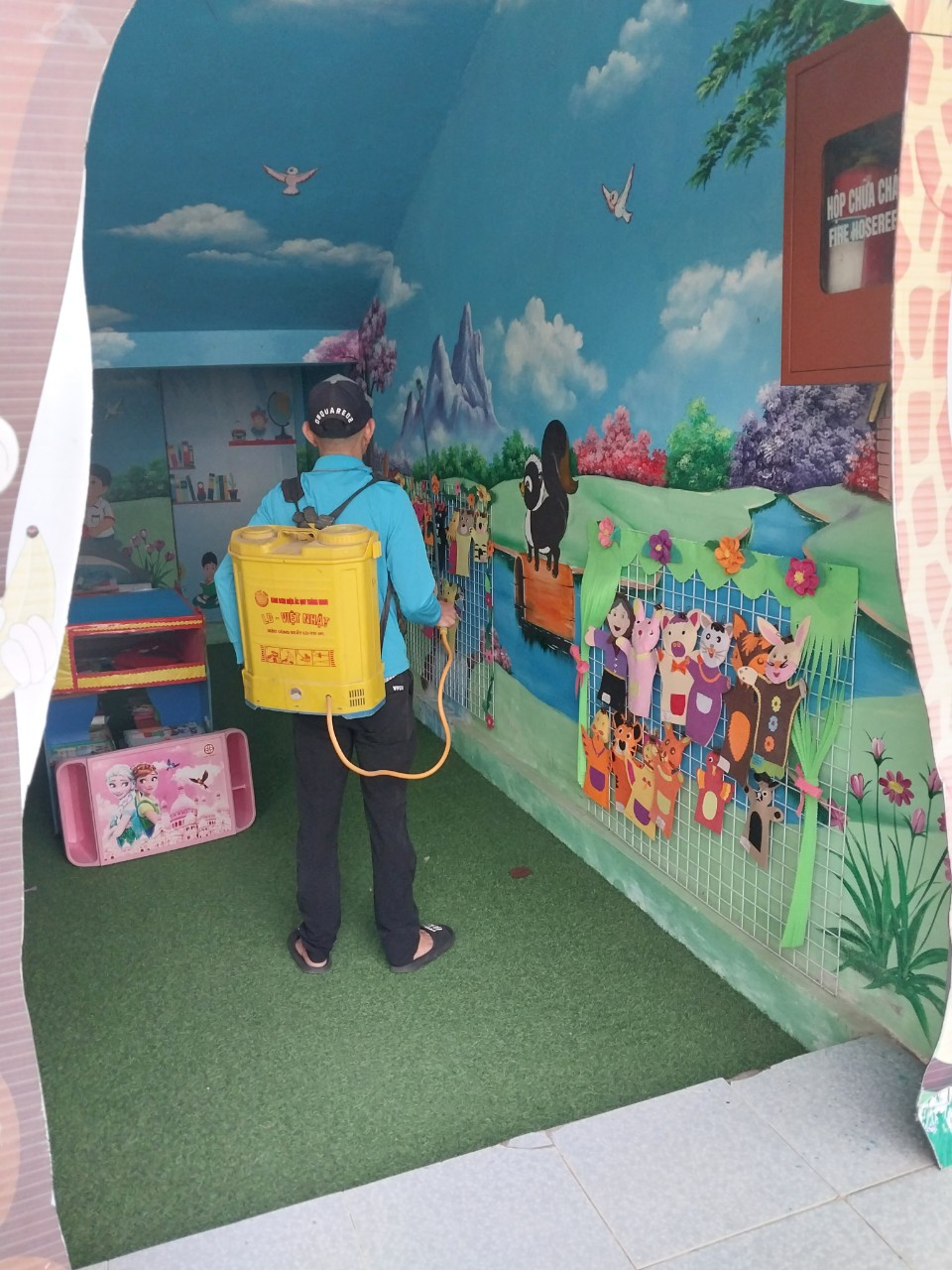 Trong những ngày giao mùa đầu hè là thời gian muỗi sinh sản và phát triển rất nhanh. Để phòng chống bệnh sốt xuất huyết trong mùa hè và diệt trừ muỗi trong trường mầm non. Trường mầm non Cổ Am đã phun thuốc diệt muỗi trong các lớp học, các phòng chức năng và toàn bộ khu vực trường. Nhà trường đã chủ động lựa chọn lịch phun vào thời gian trẻ nghỉ ngày chủ nhật để đảm bảo an toàn cho trẻ. Các cô giáo đã thu dọn, vệ sinh đồ dùng, đồ chơi, đặc biệt là che đậy những dụng cụ để ăn, uống; đồng thời mở cửa tất cả các lớp, các phòng chức năng. Sau khi phun, đã tắt điện, đóng kín tất cả các cửa phòng. Chiều chủ nhật (19/3/2023) 100% Cán bộ, giáo viên, nhân viên đến trường dọn dẹp vệ sinh trong và ngoài nhóm lớp; l rửa lại toàn bộ đồ dùng, đồ chơi, đảm bảo sạch sẽ, gọn gàng, không để ảnh hưởng đến sức khỏe của trẻ và CBGVNV nhà trường.